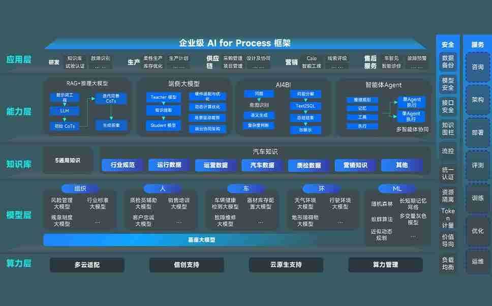 端到端的一站式AI工作空间深度融合了从企业战略规划到日常经营的全流程业务板块,,定向解决车企内部领域多、、、部门多、、、、链条长、、、、场景碎片化等难题,,,支持车企快速构建以AI为核心的生产力写作体系,,实现任务执行与AI能力的无缝集成与交互